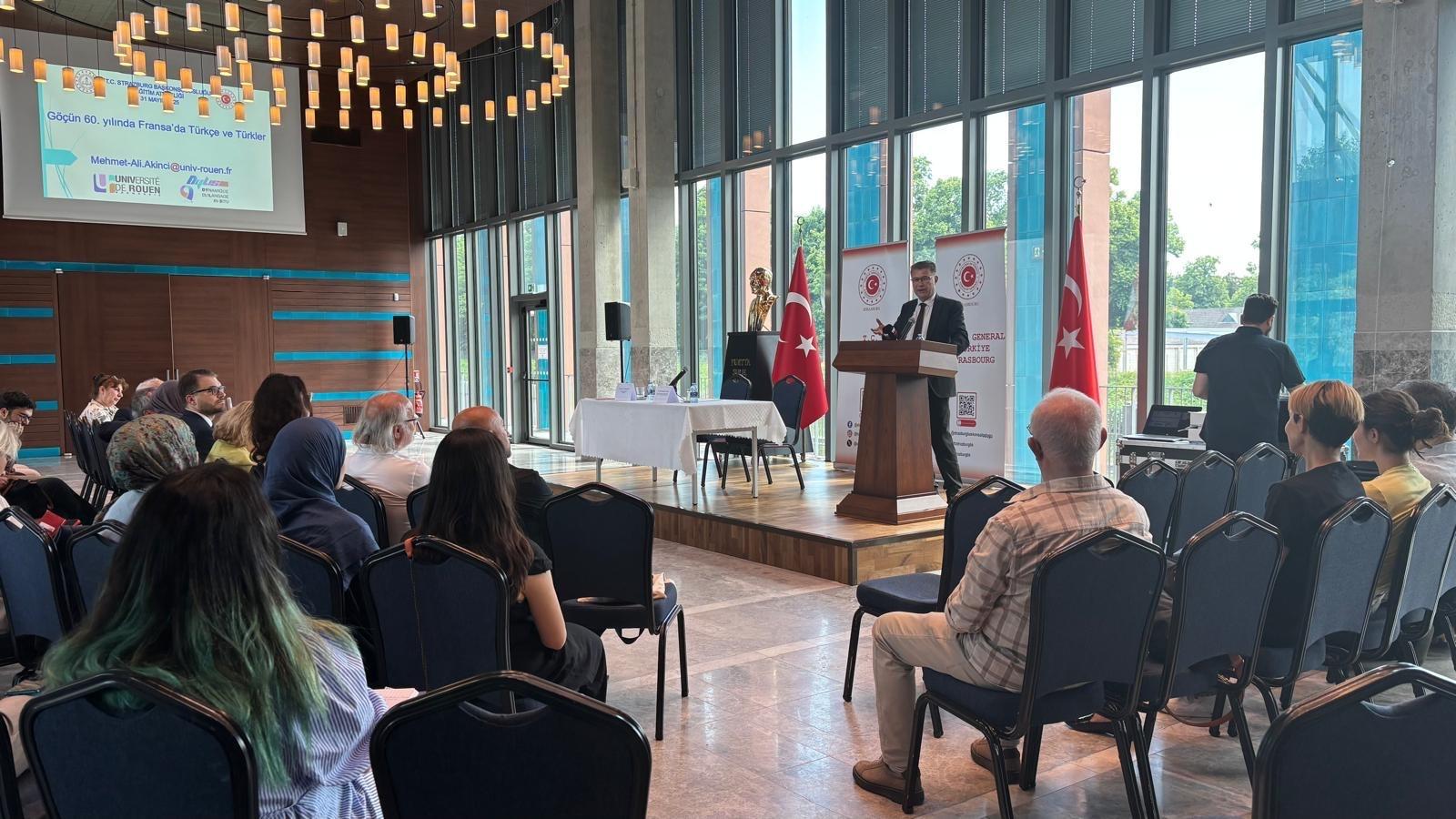Fransa'yla yapılan Türk iş göçü anlaşmasının 60. yılı dolayısıyla Strazburg Eğitim Ataşeliği bir konferans düzenledi. Türk Dil Kurumu Başkanı sn. Prof. Dr. Osman MERT ile Normandiya Üniversitesi'nden sn. Prof. Dr. Mehmet Ali AKINCI konferansa konuşmacı olarak katıldılar. Basın yayın kuruluşları ve Sivil Toplum Örgütlerinden dinleyicilerin olduğu toplulukta, Strazburg Üniversitesi'nden az sayıda lisans ve yüksek öğrencileri de vardı.