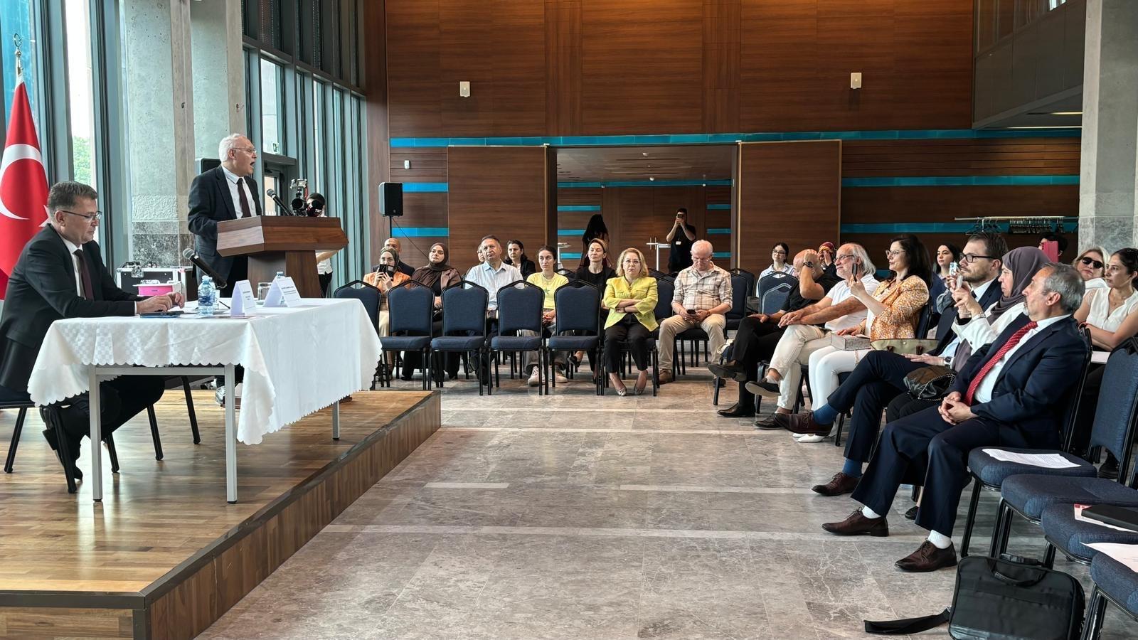Ataşemizin açış konuşmasının ardından Türk Dil Kurumu Başkanı sn. Prof. Dr. Osman MERT katılımcılara hitap etti.Prof. Dr. MERT konuşmasında, Türkçeyi ana dili olarak konuşan ve özellikle Türkiye dışında yaşayan vatandaşlarımız için "dil-kimlik ve dil-kültür" ilişkisindeki farkındalık düzeyini artıracak etkili politikaların öneminden söz etti. Türk Dil Kurumunun da bu yöndeki sorumluluklarını yerine getirmeye hazır ve kararlı olduğunu aktaran MERT, toplumsal bütünlüğün ve kültürel sürekliliğin sağlanmasında "dil ve kültür"ün temel unsurlar olduğunu vurguladı.